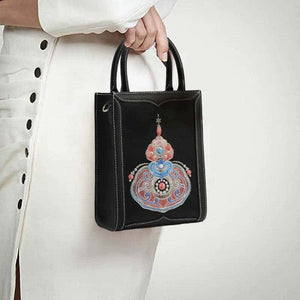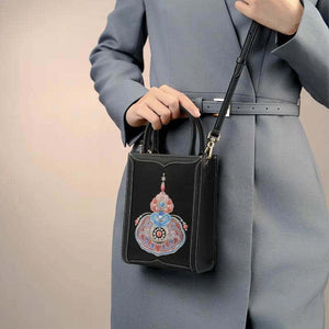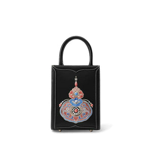 Chinoiserie Gourd Blessings Embroidered Leather Tote bag