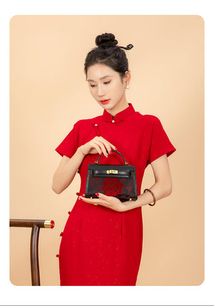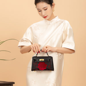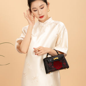 Zhang Rong New Chinese Style Velvet Silk Genuine Leather Handbag