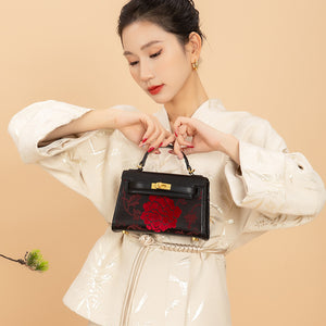 Q: Is the embroidery on this bag handmade? A: Yes! This hand-embroidered leather bag features traditional Zhang Rong craftsmanship, with each stitch carefully done by skilled artisans.