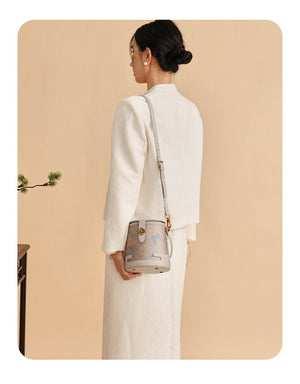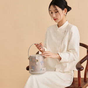 Song Brocade New Chinese Style Genuine Leather Bucket Bag