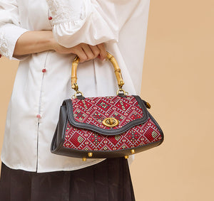 Q: Is the embroidery on this bag handmade? A: Yes! This hand-embroidered leather bag features traditional Zhuang brocade craftsmanship, with each stitch carefully done by skilled artisans.