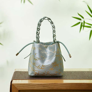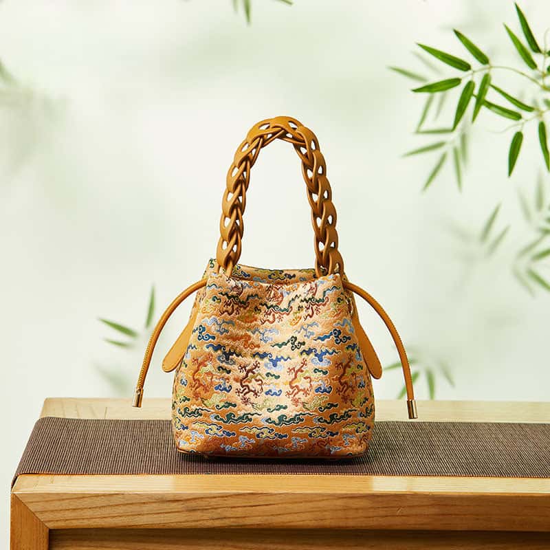 Zhi Brocade Bag New Chinese Style Genuine Leather Bucket Bag