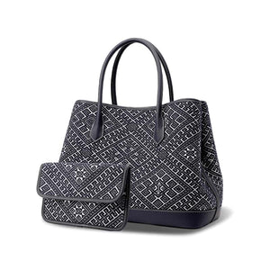 Elevating the heritage of Zhuang brocade, this embroidered leather shoulder bag marries symbolic artistry with refined materials. The Flying Swallow motif—emblematic of harmony and renewed hope—intertwines with the Eightfold Sun pattern (a celestial symbol of fortune), rendered in deep indigo hues through meticulously raised geometric embroidery. Framed by premium cowhide leather trim, the design echoes Guangxi’s intangible cultural legacy, transforming the bag into a portable canvas of ancestral storytelling.