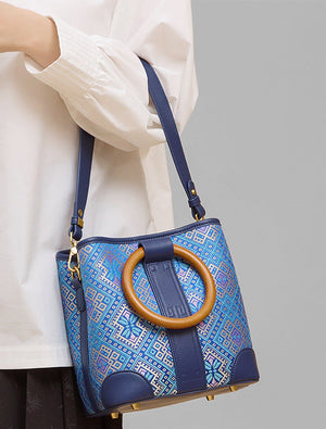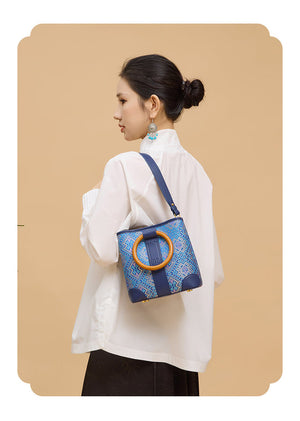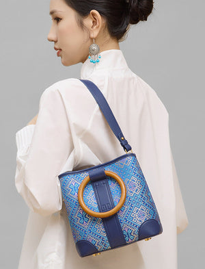 Tan Xiangguang Zhuang Brocade Round Bag New Chinese Style Deep Blue Bucket Bag