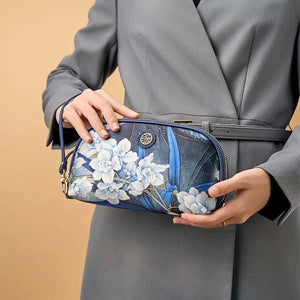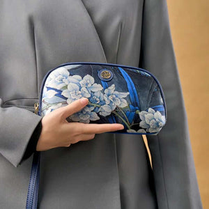 Chinoiserie Luxury Large-Capacity Blue Orchid Print Clutch