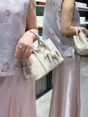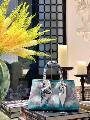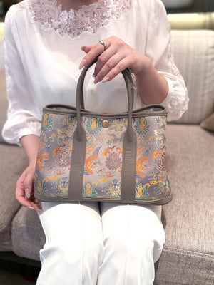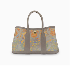 This refined “garden tote” is crafted with Song Brocade (mulberry silk)—a heritage-inspired textile known for its rich woven texture and elegant sheen. Finished with top-grain leather and waxed-thread hand stitching, it balances cultural artistry with a modern, elevated silhouette.