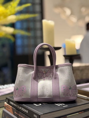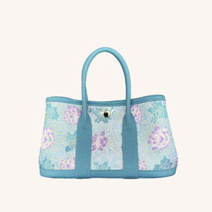 This refined “garden tote” is crafted with Song Brocade (mulberry silk)—a heritage-inspired textile known for its rich woven texture and elegant sheen. Finished with top-grain leather and waxed-thread hand stitching, it balances cultural artistry with a modern, elevated silhouette.