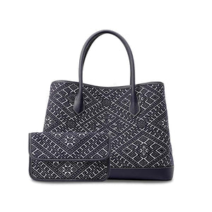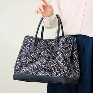 Elevating the heritage of Zhuang brocade, this embroidered leather shoulder bag marries symbolic artistry with refined materials. The Flying Swallow motif—emblematic of harmony and renewed hope—intertwines with the Eightfold Sun pattern (a celestial symbol of fortune), rendered in deep indigo hues through meticulously raised geometric embroidery. Framed by premium cowhide leather trim, the design echoes Guangxi’s intangible cultural legacy, transforming the bag into a portable canvas of ancestral storytelling.