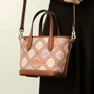 Q: Is the material durable for daily use? A: Definitely. Made with premium cowhide leather and sturdy fabric, this bag is built to last while keeping its elegant look.