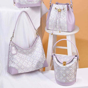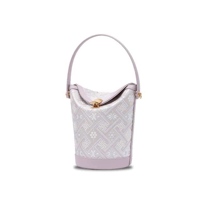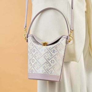 Sac bandoulière seau en cuir brocart Zhuang violet romantique