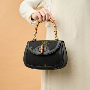 Sac bandoulière imprimé Xiangyunsha avec poignée en bambou pour femme