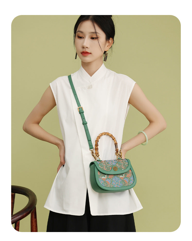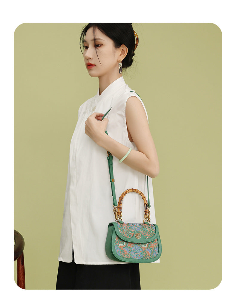 Song Brocade Bag New Chinese Style Genuine Leather Shoulder Bag