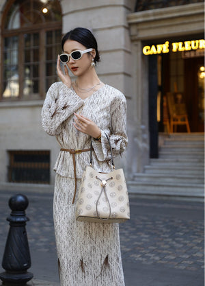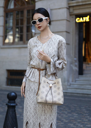 With a lightweight structure and versatile carry options, it works as a commuter shoulder bag or an elegant handheld bucket bag—perfect for office days, city outings, and elevated everyday outfits.