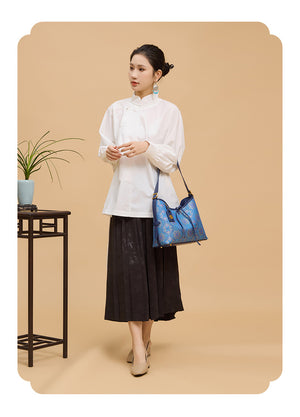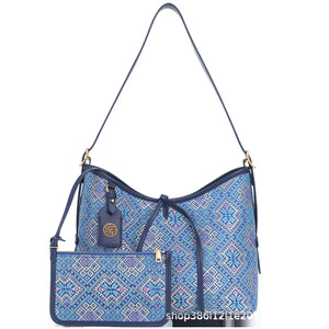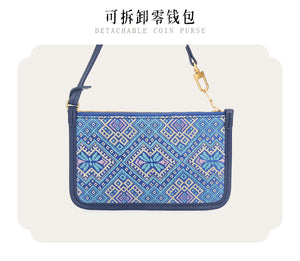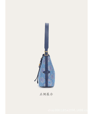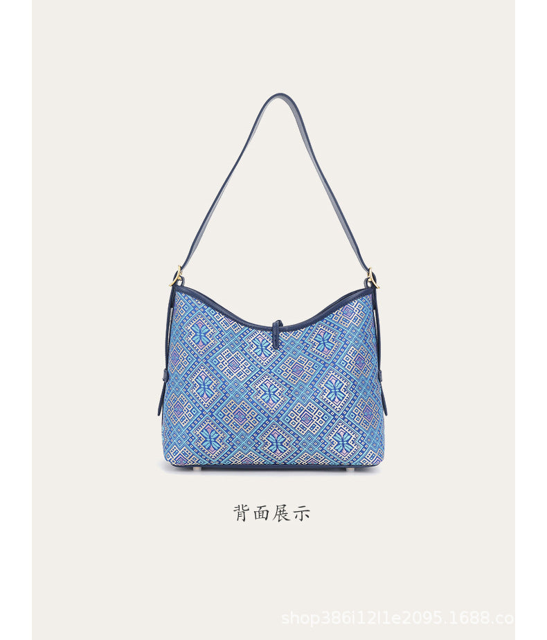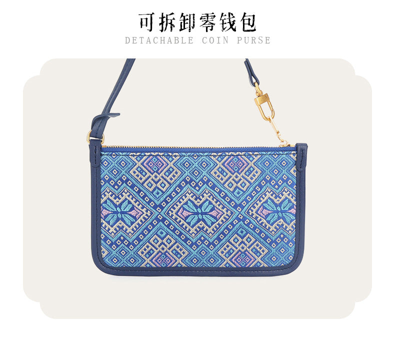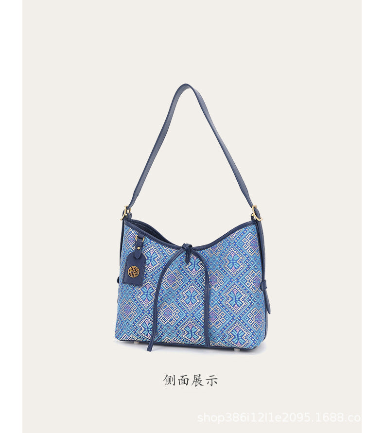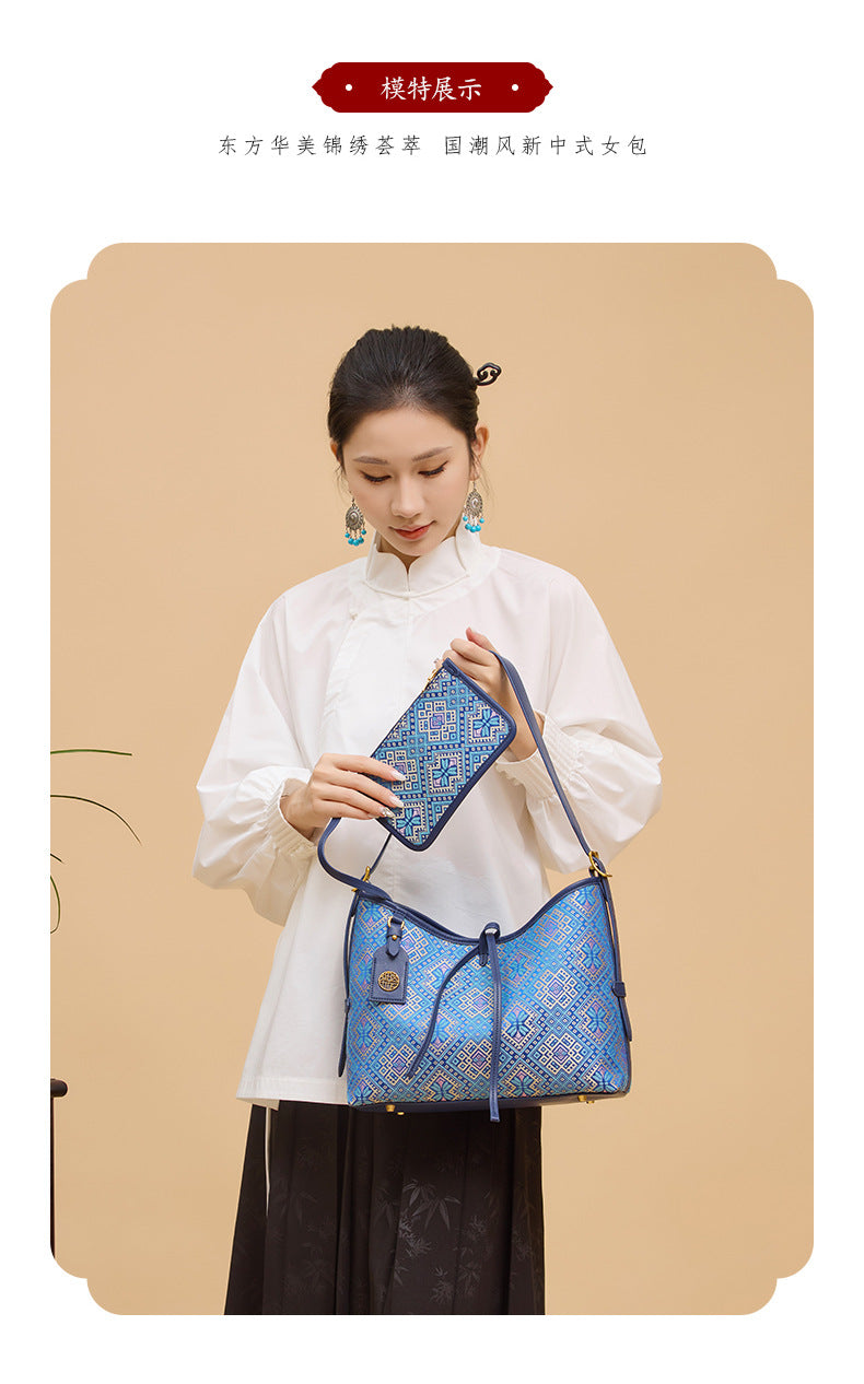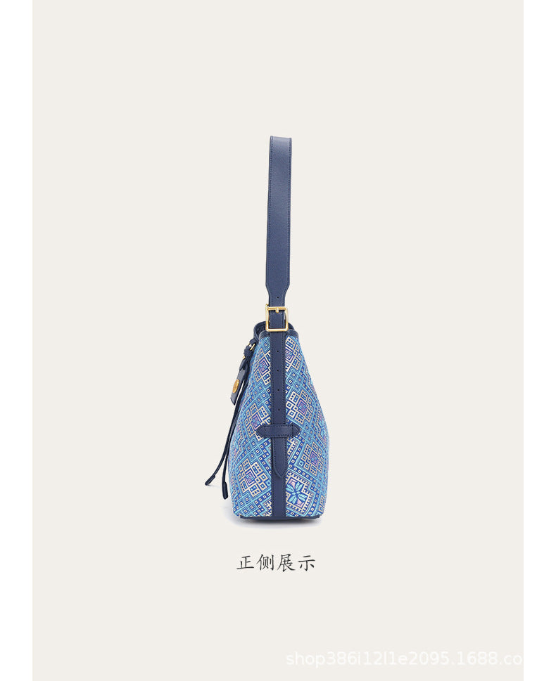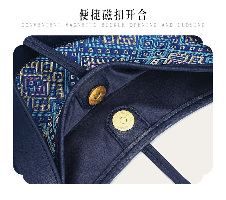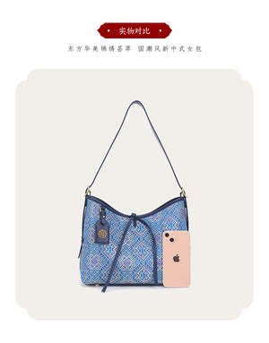 Tan Xiangguang Famous Zhuang Brocade Bag New Chinese Style National Style Tote Bag Genuine Leather High-end Sense Deep Blue Fashion Mother and Child Bag