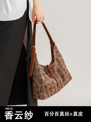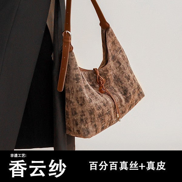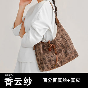 Xiangyun Silk Bag Non-Woven Tote Bag 100% Mulberry Silk Handbag Fashionable Portable Commuting Crossbody Shoulder Bag