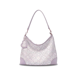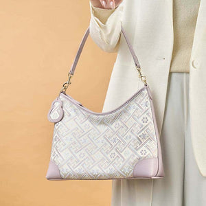 庄锦皮革单肩包手提包浪漫紫色